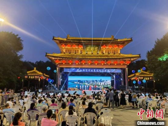 中新網沈陽6月22日電(李晛)夏至渾河,渾河之夏。渾河水脈一路鋪陳、斑斕光影,渾河岸邊歡歌笑語、詩情畫意。6月21日晚,第八屆“渾河之夏”文化藝術季開幕式暨“以奮進之名”主題文藝演出在沈水灣公園云飏閣舉行,今夏關于文化藝術、品質生活、夢想與奮進的篇章正式開啟。