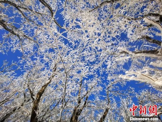 11月13日,遼寧本溪,城郊近山平頂山、老母嶺現霧凇美景,在陽光下晶瑩剔透,銀白如花。樊甲勇 攝 圖片來源:視覺中國