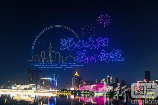 8月17日晚,遼寧沈陽,沈陽航空產(chǎn)業(yè)集團在渾河上空舉辦無人機矩陣表演。此次表演分為“遼寧發(fā)展”“沈陽風貌”“大國重器”和“飛行大會”四個篇章。圖為無人機矩陣表演。 中新社記者 于海洋 攝