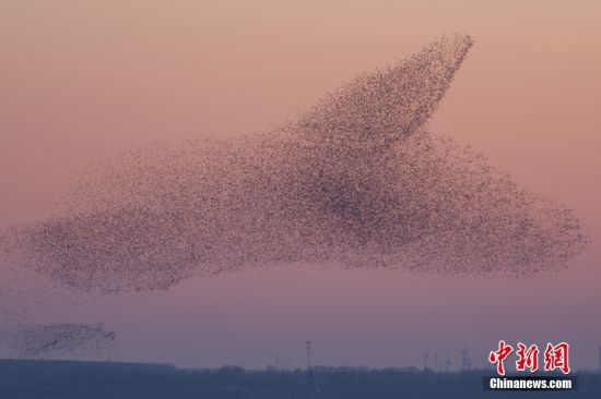 2024年4月8日,沈陽康平縣臥龍湖生態區水域上空,數萬只花臉鴨同時與夕陽共舞,形成壯觀的“鳥浪”。