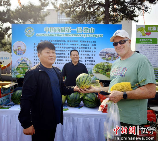來自梁山鎮人民政府的小伙子劉超,則用地道的評書方式向大家介紹,“梁山西瓜”有近150年的種植歷史,梁山鎮是聞名全國的西瓜之鄉。梁山鎮域內西瓜種植面積達到6萬余畝,其中設施農業種植面積3萬余畝。“梁山西瓜”年產量30余萬噸,銷往全國21個省、自治區和直轄市。2023年,遼寧省品牌建設促進會發布“梁山西瓜”的品牌價值為36.7億元。
