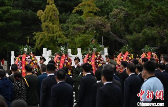 9月30日是國家設立的烈士紀念日。遼寧省暨沈陽市向烈士紀念碑敬獻花籃儀式在沈陽抗美援朝烈士陵園舉行。圖為活動現場。中新社記者 于海洋 攝