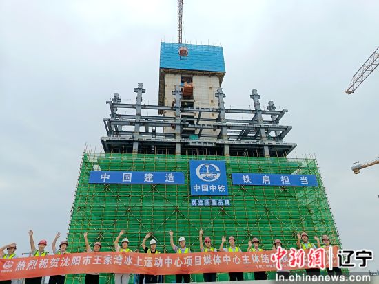 中新網遼寧新聞8月29日電(記者趙桂華)8月29日下午,中國新聞社記者在沈陽王家灣冰上運動中心項目現場看到,該項目媒體中心16層頂順利完成混凝土澆筑封頂工作,這標著整個沈陽王家灣冰上運動中心項目地上混凝土主體結構施工順利如期完成!高約40米的綜合館、速滑館和高60多米的媒體中心拔地而起,至此歷時123天,王家灣冰上運動中心項目已初具雛形。