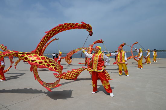儀式在《漁家姑娘在海邊》的熱場舞蹈中開場,尤為引人注目的是舞龍表演:兩條大龍與16條小龍通過“8字舞龍”“游龍穿騰”等動作,展現(xiàn)出海洋的靈動與磅礴。兩位資深老船長擔(dān)任點睛嘉賓,為龍頭“賦靈”。點睛禮成,鼓樂齊鳴,龍隊相繼完成“龍翻身”“螺旋跳龍”等高難度動作,將現(xiàn)場氣氛推向高潮。